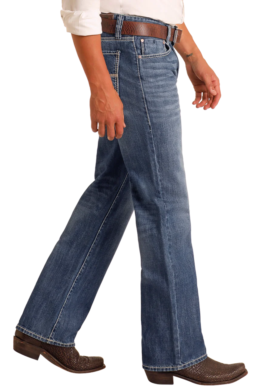 Relaxed Fit Medium Wash Straight Leg Jeans